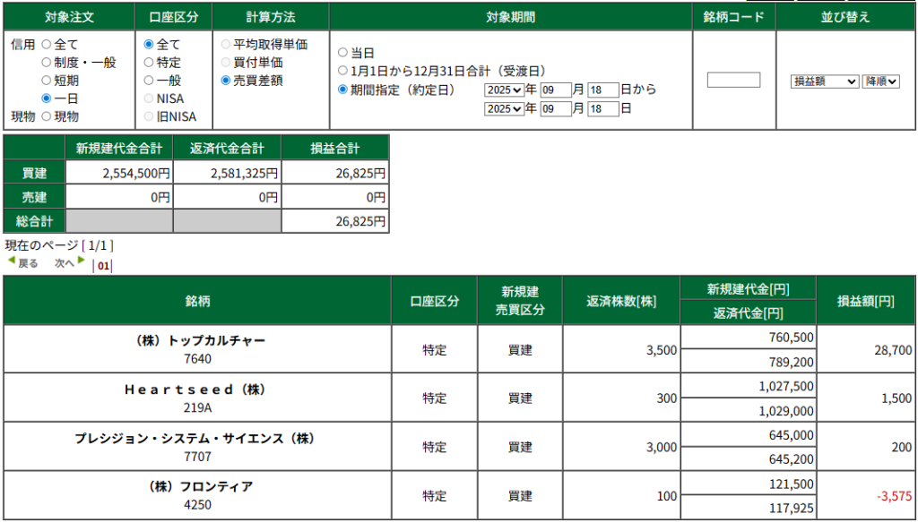 9時~15時30分まで成績 +29325 確定:+29325 含み:±0
