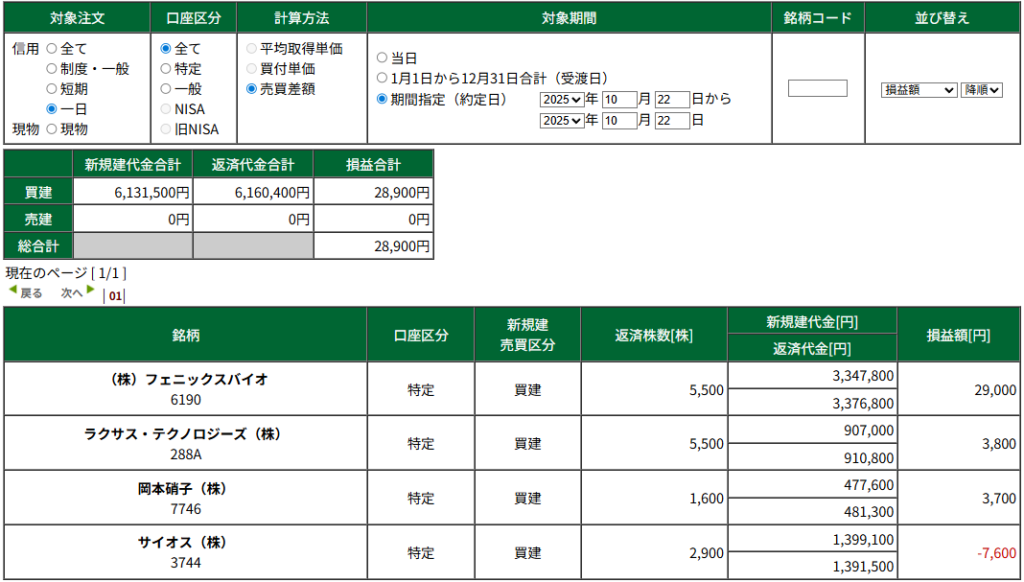 9時~15時30分まで成績 +26200 確定:+28900 含み:-2700