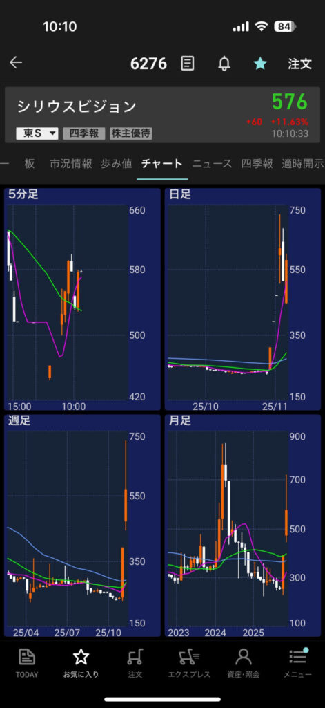 300万円のロットもストップ安に張りつけられて強制持ち越しとなったシリウスビジョンが大幅GDして死