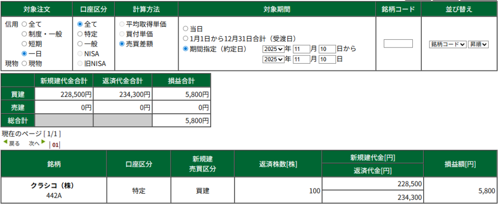 9時~11時30分まで成績 +5800 確定:+5800 含み:±0