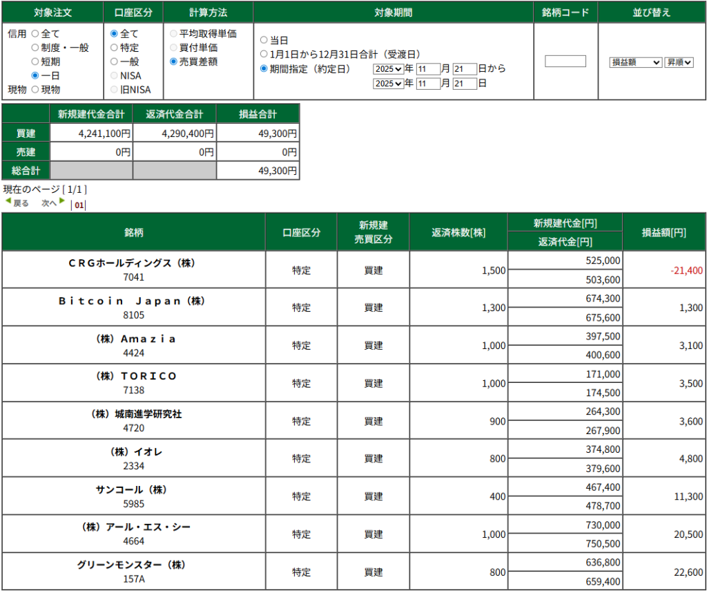 9時~11時30分まで成績 +55200 確定:+55100 含み:+100