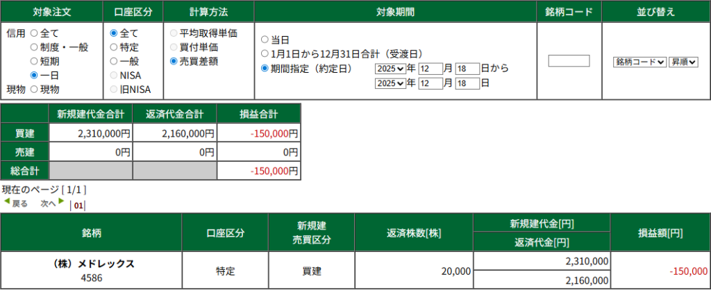 9時~15時30分まで成績 -150000 確定:-150000 含み:±0