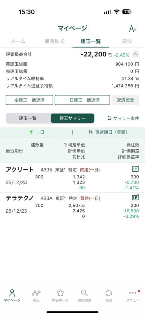 デイトレで3万円以上勝てたら、その勝ち分で含み損を損切する!