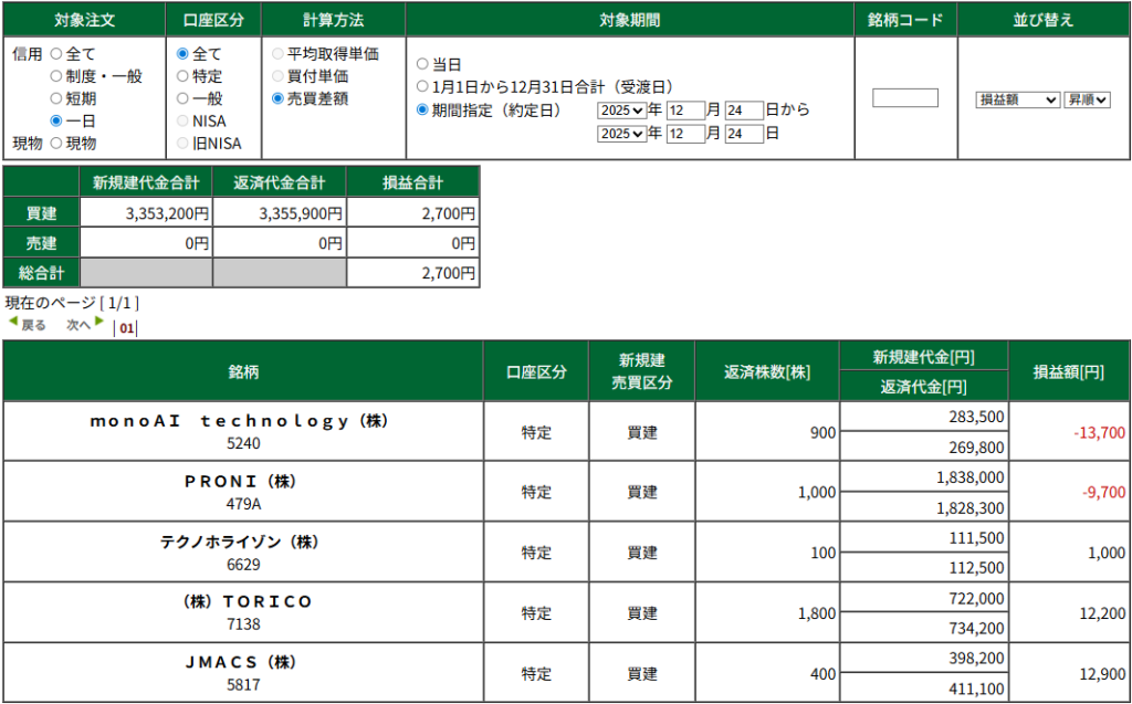 デイトレで3万円以上勝てたら、その勝ち分で含み損を損切する!