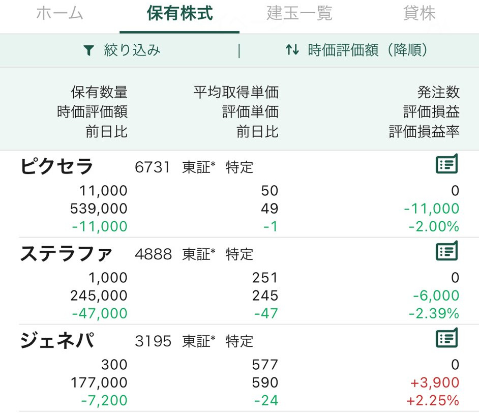 今日の相場全体の振り返りを先にしてたけど、半導体、ドローン、いろいろテーマ出て盛り上がってたし、需給の仕手株みたいなのもいろいろ物色されてたし、ほんといろいろあったのに、何も乗れずに、ただただ東証最弱だったステラファーマに固執してしまった。今日、東証で1番ヘタクソだったんじゃないか?あああああああ!!!
