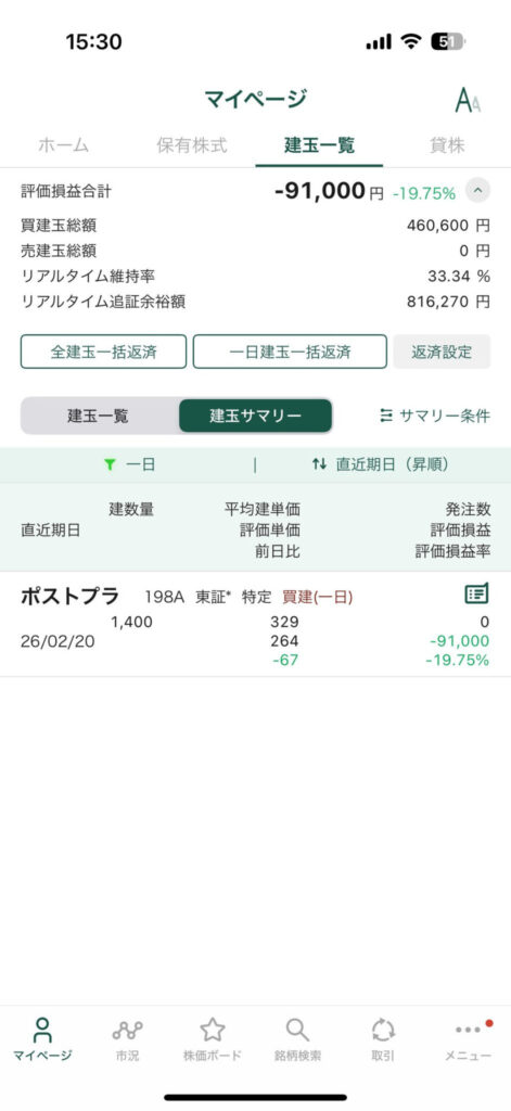 本日のデイトレ -15万5400円