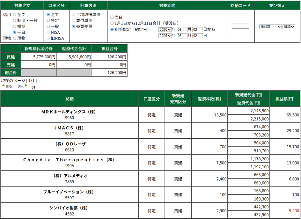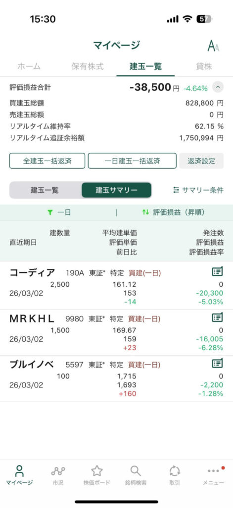 デイトレ王子としてデイトレ革命を謳う3月!幸先は良くも暗雲も立ち込める! 3/2(月)デイトレード結果 2026年38営業日目