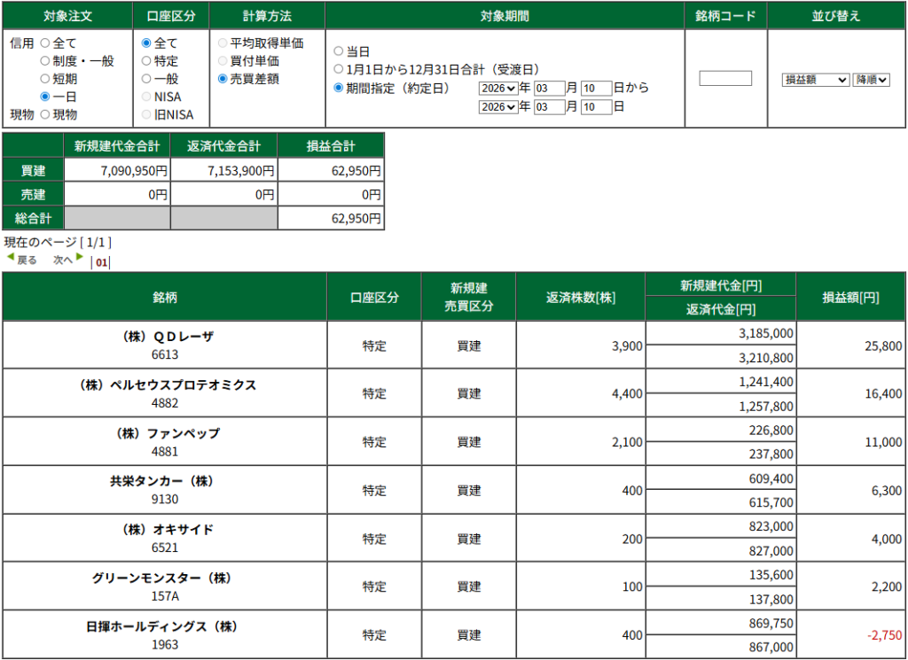 本日のデイトレ +66750円