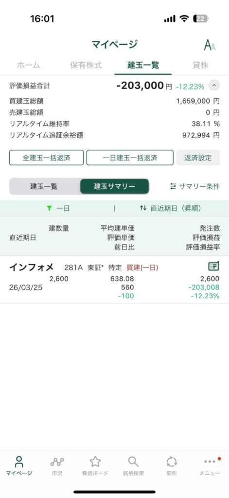 デイトレ30万円超え負け!デイトレだけで2日で50万円以上負け、年初来マイナス100万円突破で死!