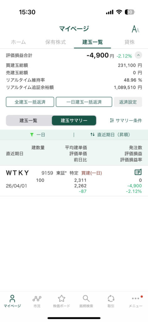 3月デイトレのみ -44万9607円 3月 -123万6961円