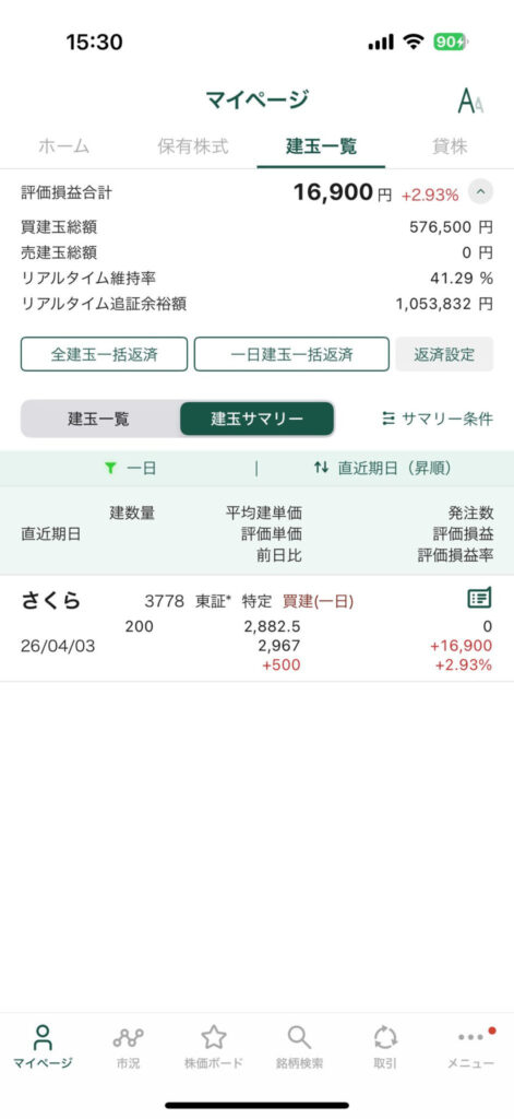 4月デイトレのみ +15万3900円