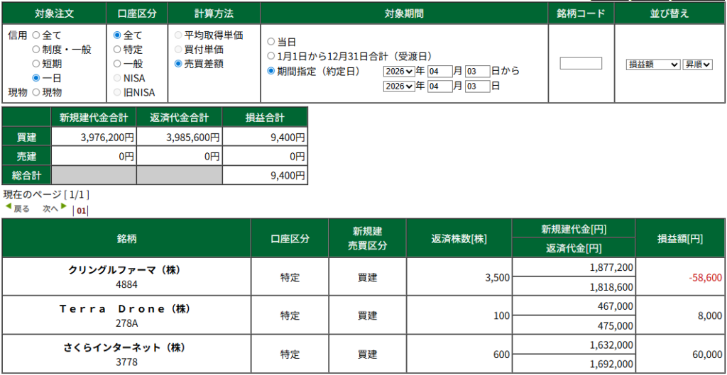 本日のデイトレ +26300円